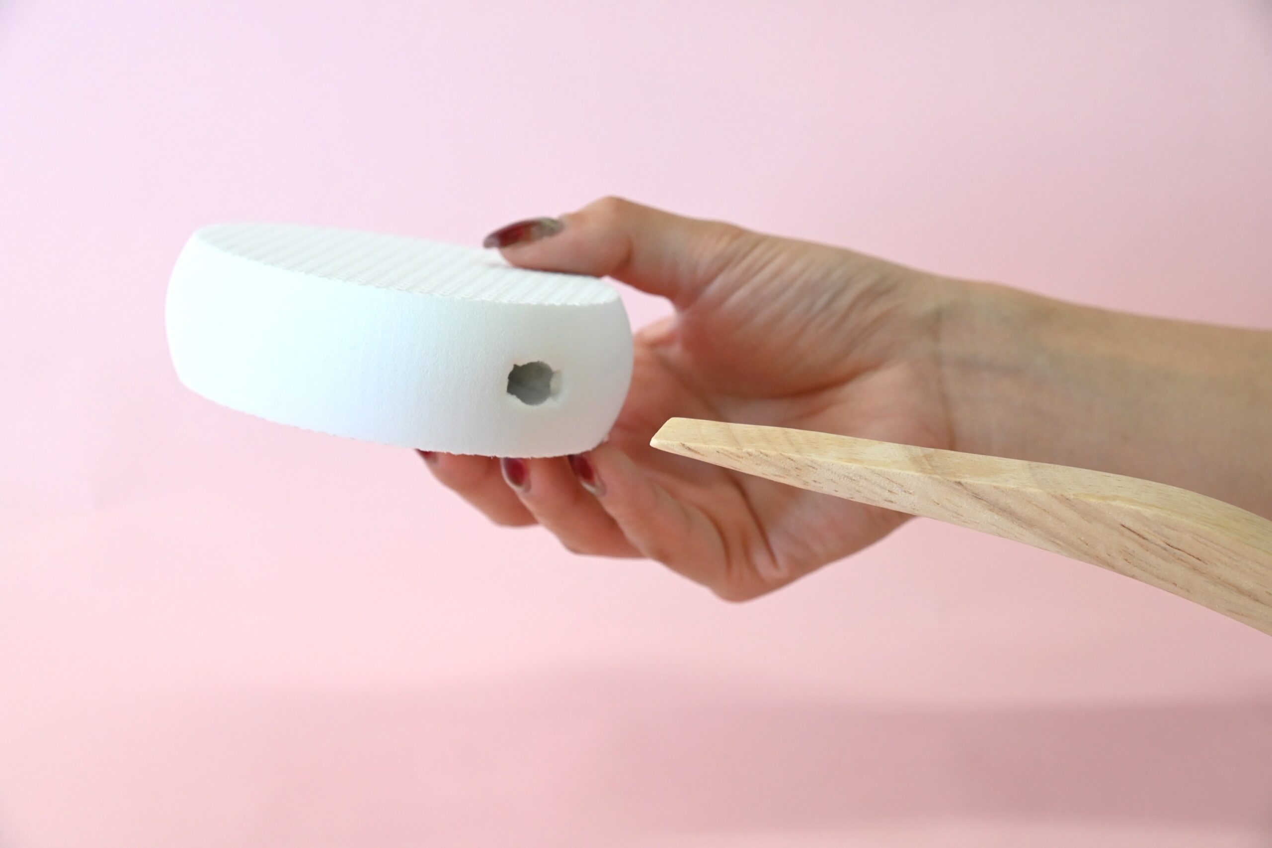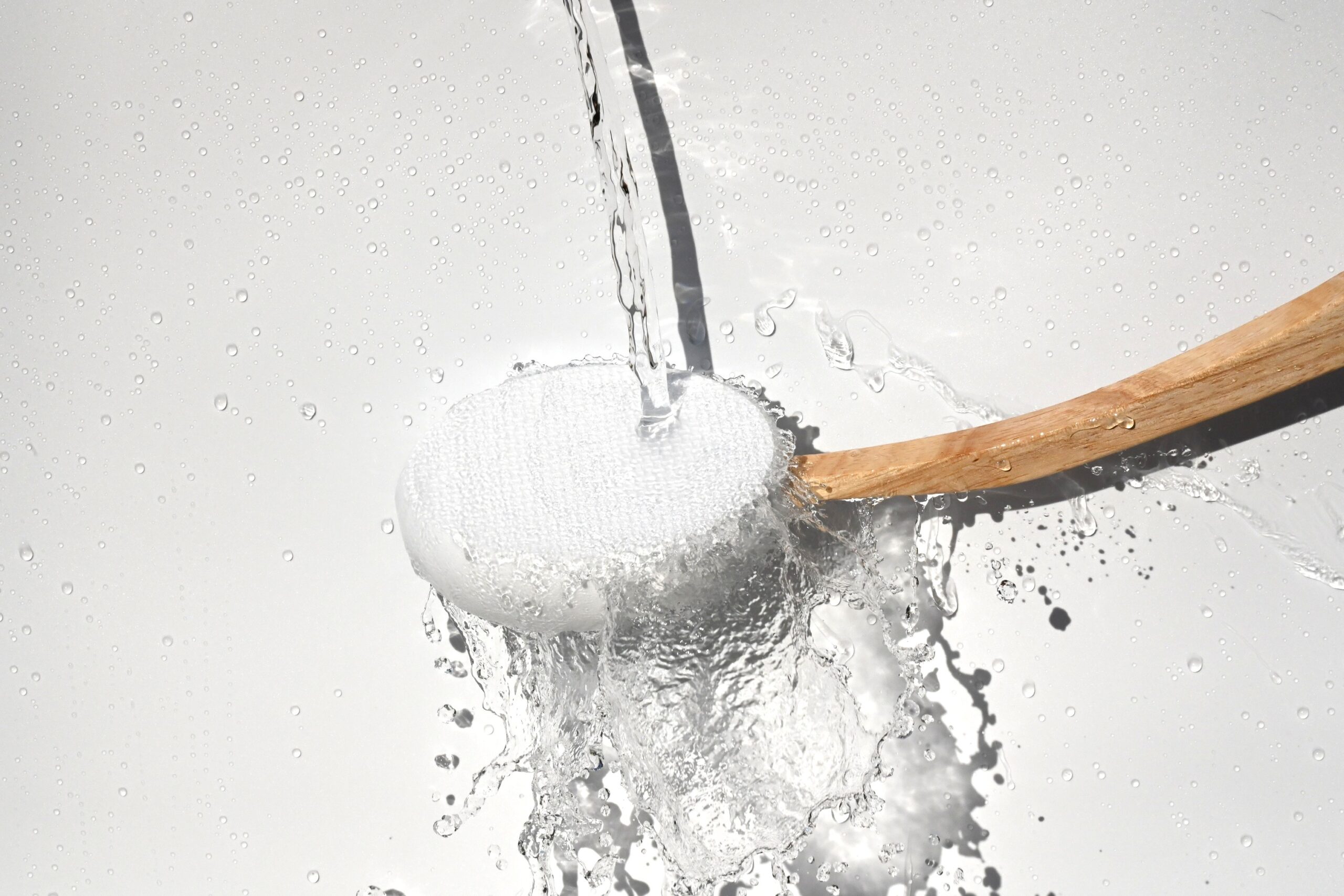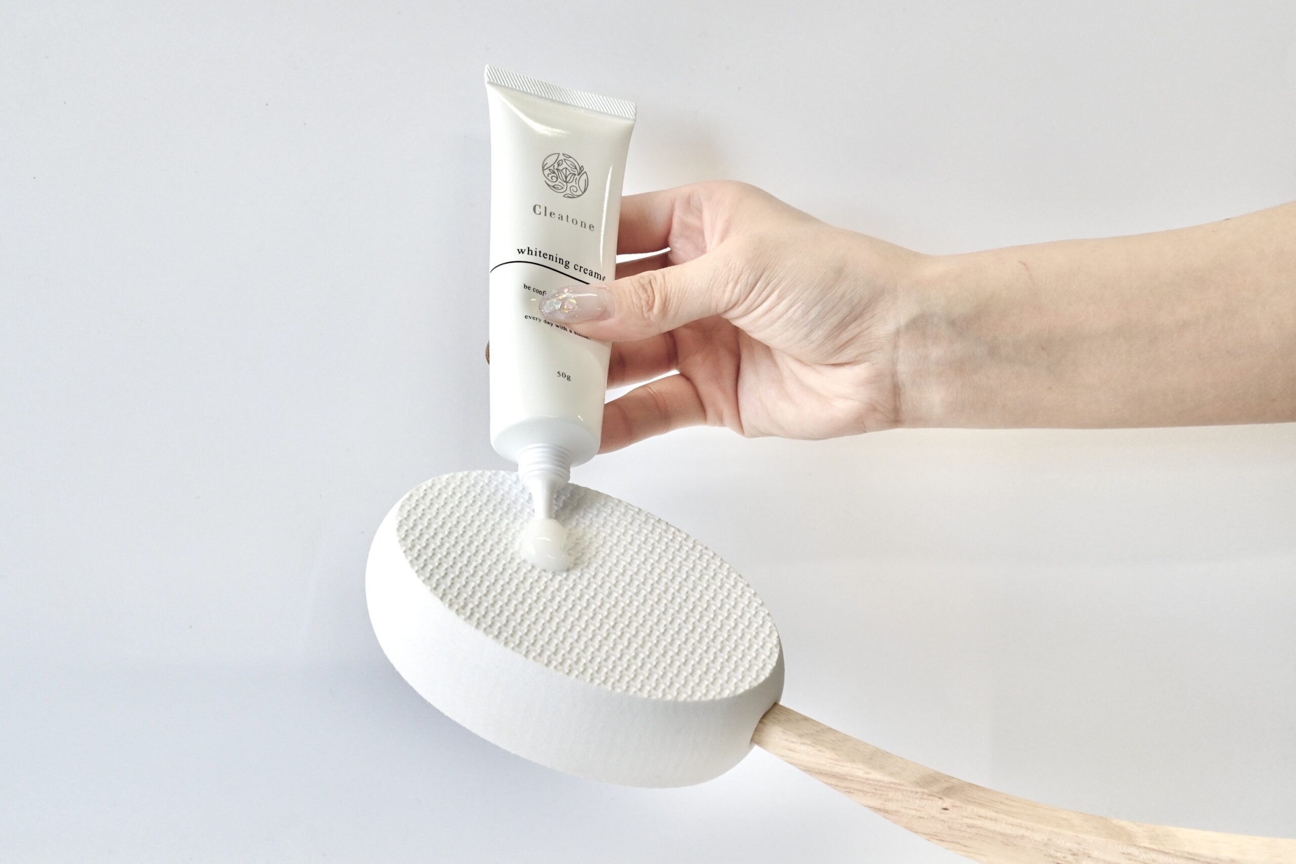 〇Cleatoneの背中にクリームを塗る道具は、医師監修のもと、摩擦の少ないパッドを採用し、手にフィットする木製ハンドルと衛生的なグリップ設計を実現しています。 他社製品のヘラが外れやすい、グリップが不衛生、伸縮して使いにくいといった問題を解決しています。